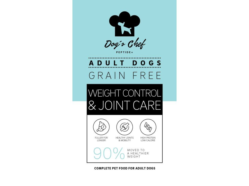 Produkt Dog’s Chef WEIGHT CONTROL & JOINT CARE pomáha udržiavať zdravú hmotnosť vďaka špeciálne formulovanej diéte, ktorá rešpektuje potreby psov s nižšou aktivitou, po kastrácii alebo s predispozíciou na priberanie.